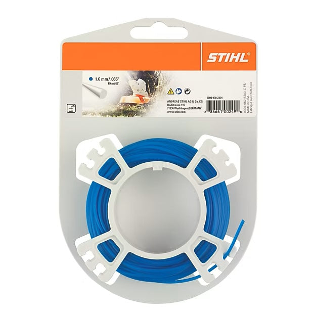 With its versatile standard shape, the round STIHL mowing line with 1.6 mm diameter is ideal for trimming lawn edges and mowing work. Thanks to its round profile, the trimmer line is less sharp and thus prevents damage to obstacles made of wood or stone. Round STIHL mowing lines are made from abrasion-resistant and long-lasting elastic material.